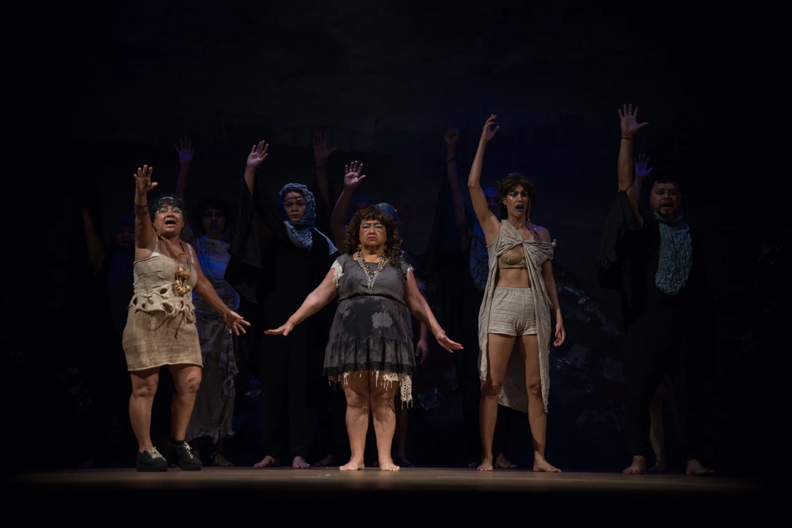 A história é acompanhada por urubus farsescos que narram a trama com humor e ironia, enquanto uma trupe de embusteiros tenta se apropriar da recém-fundada república. Através desses elementos, a peça explora temas como a luta pela sobrevivência, a busca por justiça social e a força da esperança diante das dificuldades.