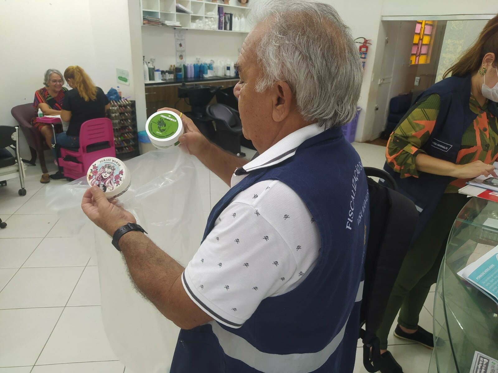 A Visa Manaus, a partir da Gerência de Vigilância de Medicamentos (Gevmed), vem realizando, desde o dia 15 de fevereiro, a operação “Cabelo Seguro”, para fiscalizar o comércio e o uso das pomadas modeladoras na capital amazonense, orientando trabalhadores e empresários de estabelecimentos, como lojas de varejo e distribuidoras de cosméticos, salões de beleza, barbearias, drogarias e supermercados sobre a decisão da Anvisa, e assegurando o cumprimento da interdição dos produtos.