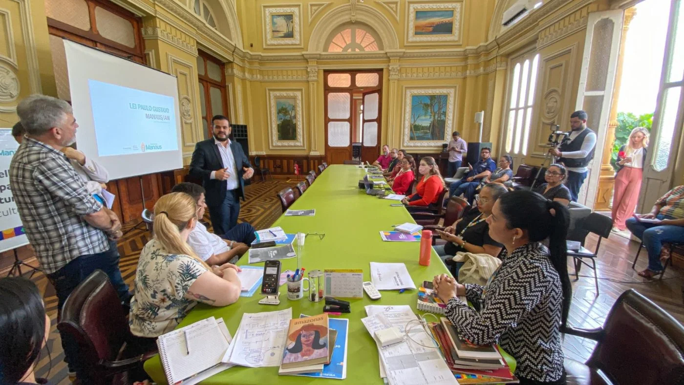 A Prefeitura de Manaus realizou a reunião geral de criação do Comitê Gestor Municipal de implementação da lei Paulo Gustavo, para alinhamento das responsabilidades de todas as secretarias envolvidas, nesta terça-feira, 25/4, coordenada pela Fundação Municipal de Cultura, Turismo e Eventos (Manauscult), e Conselho Municipal de Cultura (Concultura), no Palácio Rio Branco, Centro.