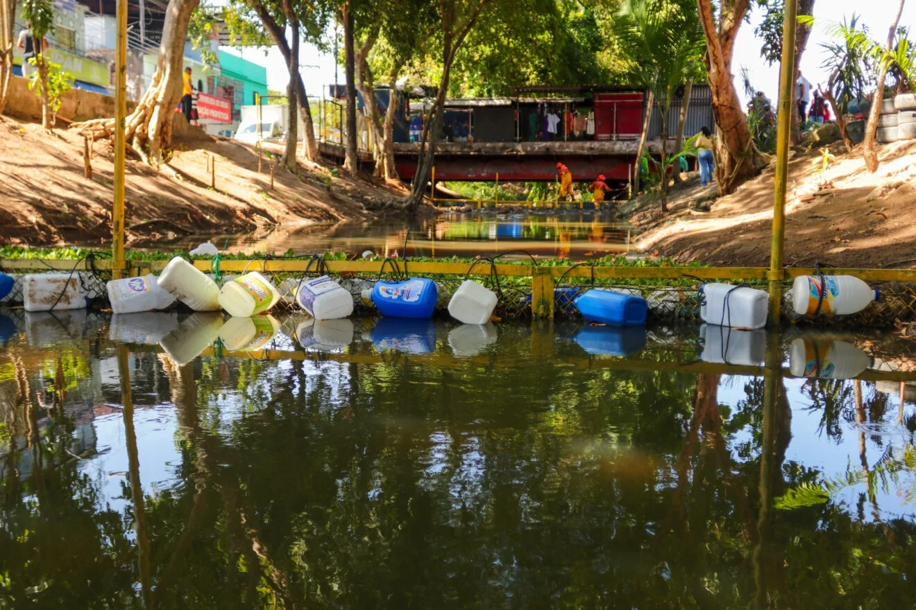 As ecobarreiras são uma das ações implementadas pelo projeto. Essas estruturas foram instaladas nos 33 igarapés da capital e têm um papel fundamental na redução do lixo que chega aos rios. Somente com as três ecobarreiras já implantadas, foi possível recolher cerca de 60 toneladas de lixo, impedindo que esses resíduos poluíssem o rio Negro. A expectativa é de que a quantidade de resíduos diminua ainda mais com a utilização contínua das ecobarreiras.