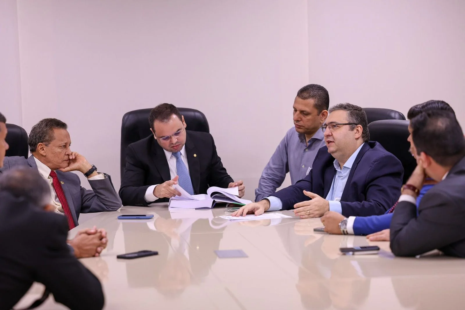 O presidente da Assembleia Legislativa do Amazonas (Aleam), deputado estadual Roberto Cidade (UB), recebeu nesta quarta-feira, 22/5, o secretário de Estado da Fazenda do Amazonas (Sefaz), Alex Del Giglio, que entregou o Relatório de Gestão Anual/2023 do órgão. O ato contou com as presenças dos deputados Carlinhos Bessa (PV), Adjuto Afonso (UB), Felipe Souza (PRD), Mário César Filho (UB), Débora Menezes (PL), Thiago Abrahim (UB), Wilker Barreto (Mobiliza), Comandante Dan (Podemos), Sinésio Campos (PT) e Cristiano D’Angelo (MDB).